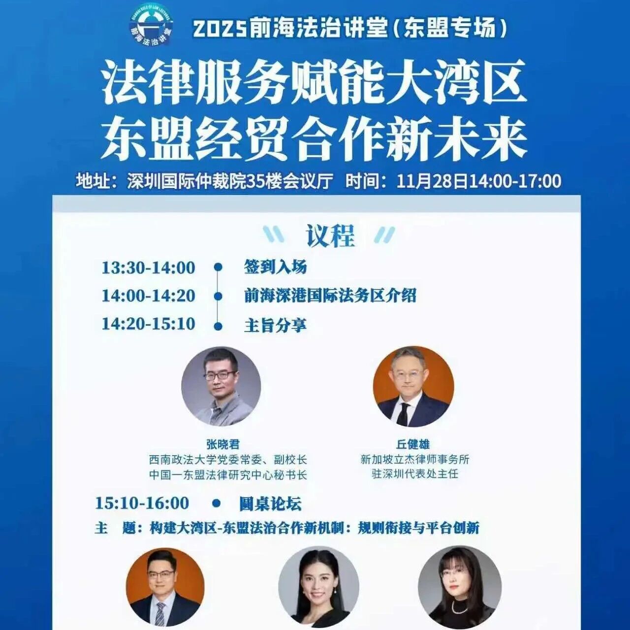 活动邀请 | 2025前海法治讲堂(东盟专场):法律服务赋能大湾区—...