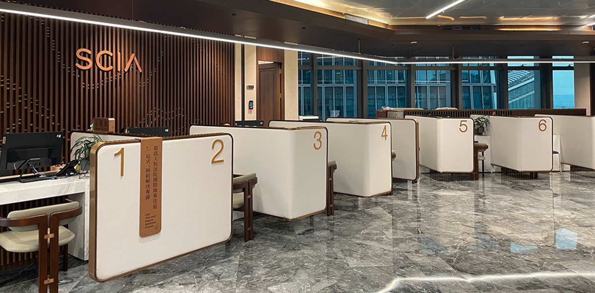 位于前海国际仲裁大厦(SCIA Tower)35楼立案大厅的最高人民法院国际商事法庭“一站式”纠纷解决专窗。