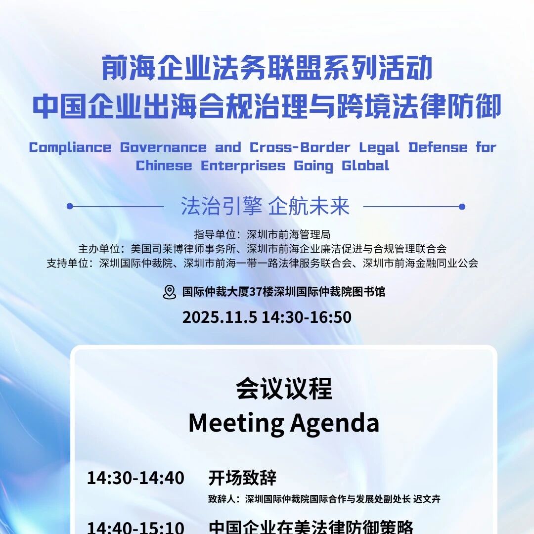 活动邀请 | 中国企业出海合规治理与跨境法律防御