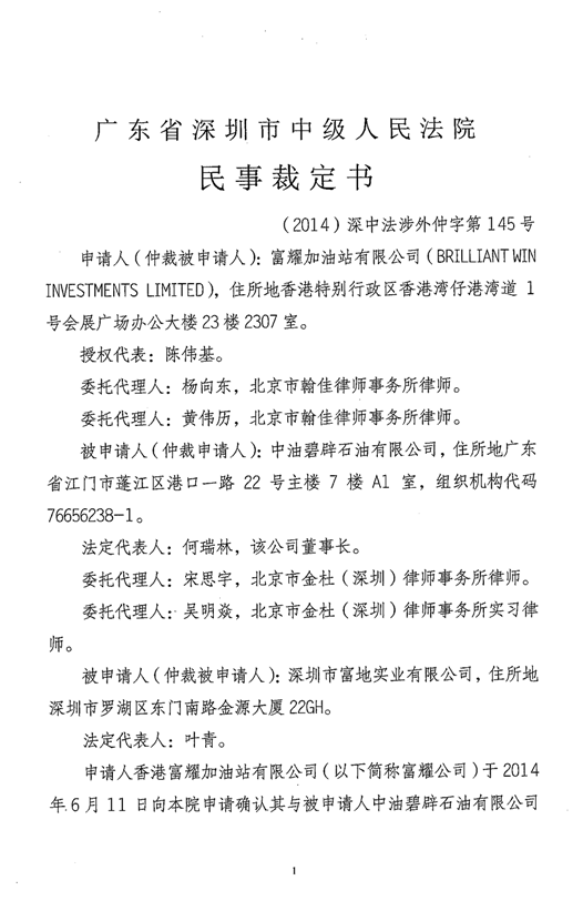 肇庆中院裁定中国国际经济贸易仲裁委员会华南分会案件由华南国仲受理