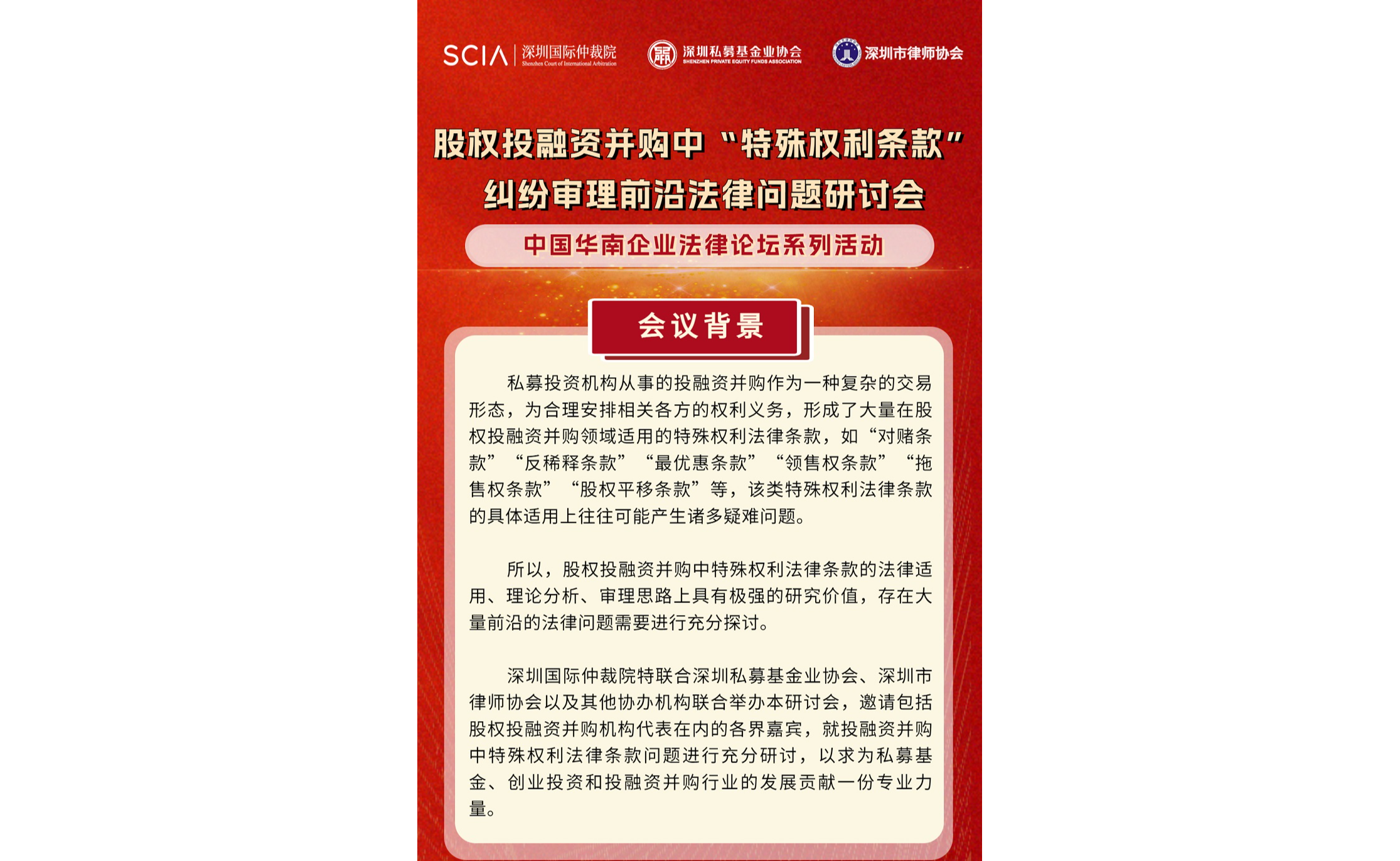 活动预告|股权投融资并购中“特殊权利条款”纠纷审理前沿法律问题研讨会