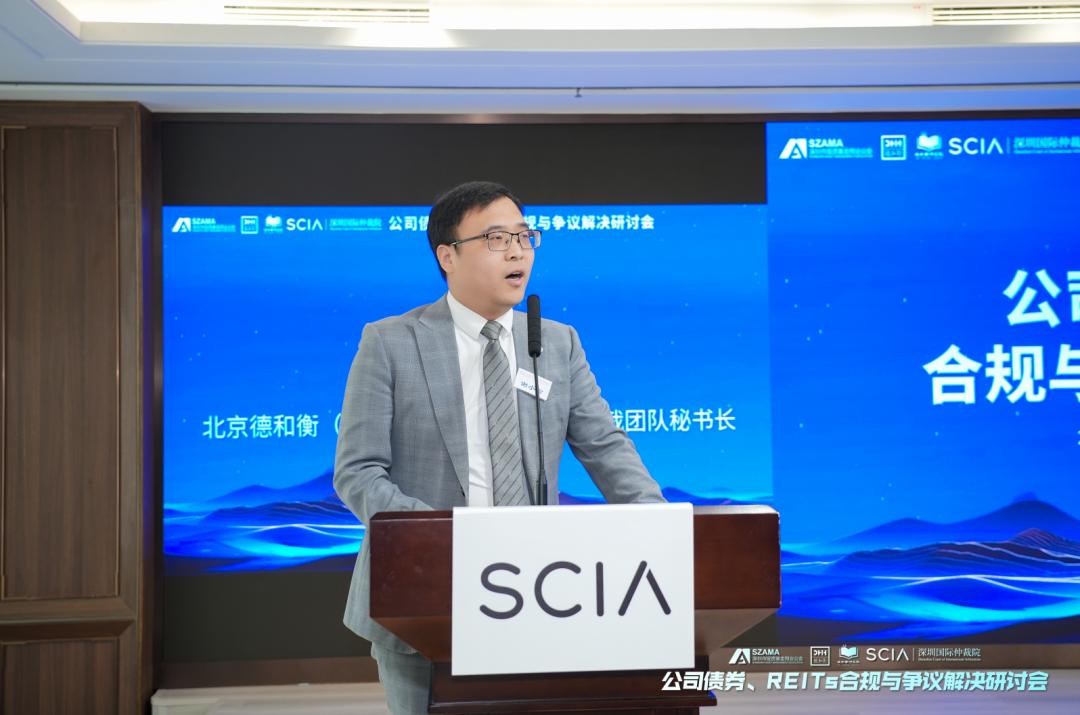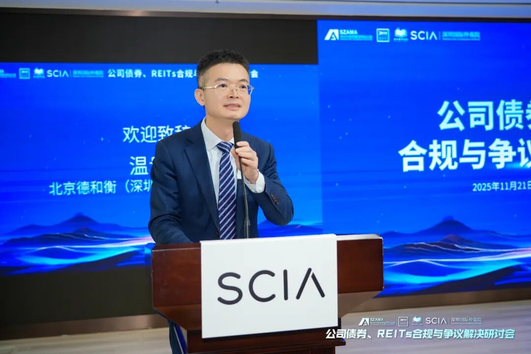 2025年11月21日下午,由深圳国际仲裁院(SCIA)支持,深圳市投资基金同业公会、北京德和衡律师事务所共同主办的“公司债券REITs合规与争议解决研讨会”在前海国际仲裁大厦举办。本次研讨会邀请来自高校、行业协会、投资银行、券商资管公司、基金公司、律师事务所的专业人士围绕债券承销机构行政法律责任、债券虚假陈述赔偿案件、公募REITs及不动产证券化以及争议解决等热点话题展开研讨,吸引来自房地产、交通运输、电子信息、通讯科技、股权投资、证券、基金、资管、会计服务及法律服务等领域的专业人士通过现场和线上的方式共同参与。
