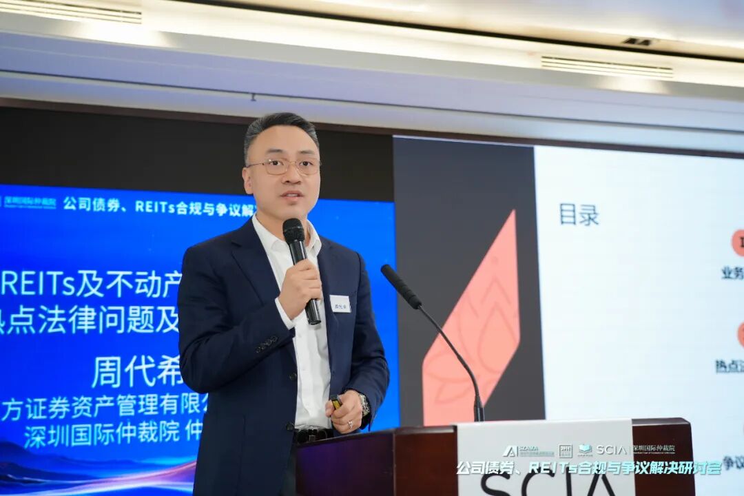 上海东方证券资产管理有限公司副总经理、深圳国际仲裁院仲裁员周代希以“REITs及不动产证券化热点法律问题及争议解决”为题作主题发言