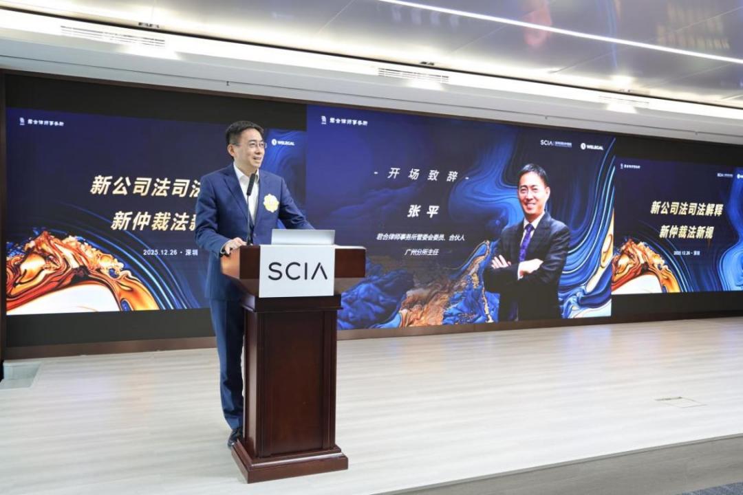 2025年12月26日,由君合律师事务所、WELEGAL法盟联合主办,深圳国际仲裁院(SCIA)特别支持的SCIA法务研讨之“新公司法司法解释·新仲裁法新规”专题活动在前海国际仲裁大厦(SCIA Tower)举行。