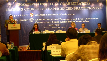 为了培养一流的国际仲裁员和国际仲裁代理人,使越来越多的中国律师和法律工作者熟悉、掌握和熟练运用国际通行规则,2005年3月12日-13日,英国皇家御准仲裁员协会(Chartered Institute of Arbitrators)在深圳成功主办了仲裁理论和实务研讨会。这是继2003年9月、2004年5月该协会与中国国际经济贸易仲裁委员会联合分别在北京、上海之后,连续第三次在中国举办学术会议。本次会议由中国国际经济贸易仲裁委员会华南分会承办。