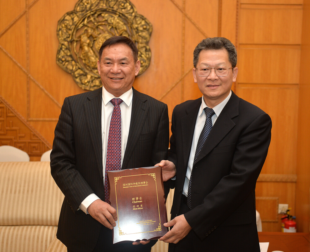 深圳国际仲裁院(华南国际经济贸易仲裁委员会)是中国内地第一家也是目前唯一一家推行法定机构改革并实行以国际化的理事会为核心的法人治理机制的仲裁机构。近日,深圳市政府新聘请了梁爱诗、沈四宝、刘新魁等知名专家作为深圳国际仲裁院(华南国际经济贸易仲裁委员会)理事会理事,并由沈四宝接替郭晓文担任深圳国际仲裁院理事长。2月14日上午,市政府举行仪式,陈彪副市长向梁爱诗、沈四宝、刘新魁等新聘理事正式颁发聘书。