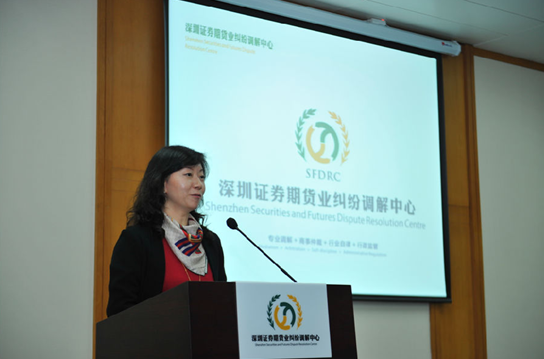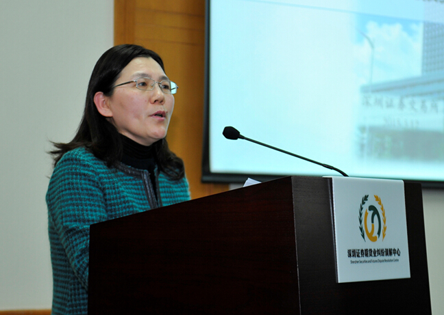 随后,调解中心副秘书长、深圳国际仲裁院联络处处长安欣女士以“资本市场纠纷解决机制创新及调解案例分析”为题进行发言。安欣在介绍调解中心的设立情况时指出,近年来在机关事业单位编制只减不增的情况下,市政府在2013年特别批准设立调解中心这个公益性事业单位,体现了市政府对营造资本市场健康有序环境的重视,希望调解中心能够更好地为投资者、机构及上市公司作好服务。调解中心受理案件范围非常广泛,不仅仅包括证券、期货业务纠纷,基金及基金子公司业务纠纷,还包括涉及上市公司的纠纷,以及股权投资、并购重组、公司僵局等资本市场纠纷。调解中心对于涉及中小投资者与深圳证券业协会、期货业协会、投资基金公会的会员以及深交所上市公司之间的纠纷,均不收取调解费用;调解中心的调解强调专业性和行业惯例,在聘41名调解员来自全国各地,均为非常熟悉资本市场业务的专家;同时,通过调解与深圳国际仲裁院仲裁相对接,可以确保调解结果的全球强制执行力。据安欣女士介绍,自2013年9月成立以来,据不完全统计,调解中心接受各类咨询有200多宗,正式受理调解案件92宗,其中包括证券交易纠纷、基金交易纠纷、期货交易纠纷及上市公司纠纷,涉案金额达到人民币4300万元。最后,安欣女士还与参会人员分享了几个调解成功的案例,并欢迎大家积极参加调解中心举办的各种活动。