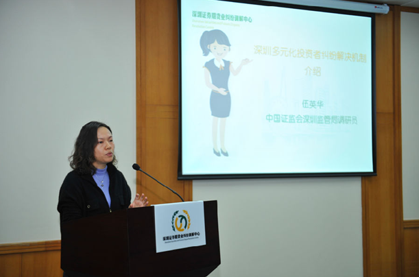 深圳证监局调研员伍英华女士专门介绍了深圳多元化投资者纠纷解决机制的情况。伍英华表示,以前投资者跟机构或者上市公司发生纠纷后,一个重要的途径就是信访,认为找监管部门就可以解决问题,但实际上存在两个问题,一个就是时间长,从受理到办理至少需要3个月时间,这个过程中还不包括反复的时间;第二个是监管部门的职责权限主要就是查处违法的行为,对求偿这一块很多时候也是无能为力。投资者抱着解决问题的目标去投诉,但最后结果跟预期可能有差距。基于这样的现状,去年从国务院到中国证监会都提出要搭建多元化解决机制。深圳2013年开始就密切跟深交所及深圳国际仲裁院合作设立调解中心,通过搭建这样一个机制,运用法制思维和方式,在现有制度框架下帮助中小投资者来解决问题,事实证明效果是很好的。希望通过各方的共同努力,多元化投诉处理机制在今后会越来越运转顺畅,大家在投资过程当中的纠纷可以得到多渠道的、合理的妥善解决。