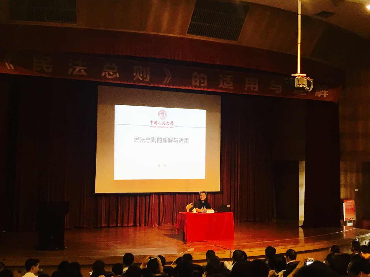 本次讲座由中国人民大学姚辉教授担任主讲人。姚辉教授是教育部人文社科重点研究基地民商事法律科学研究中心执行主任,曾任最高人民法院民事审判第一庭副庭长,具有深厚的理论功底和丰富的实践经验。姚教授结合理论研究、司法实务对《民法总则》的内容进行了深入浅出的剖析讲解,并融会贯通我国的其他民事法律条文,对重点条款进行了解读,现场不时响起赞许的掌声、开怀的笑声……虽然时值周末,在长达6个多小时的《民法总则》讲授过程中,礼堂内始终座无虚席,过道上也临时加满了座位,炎热的天气也无法阻挡深圳法律人的学习热情。讲座结束后,部分听众仍意犹未尽,纷纷来到讲台前请姚教授答疑解惑。