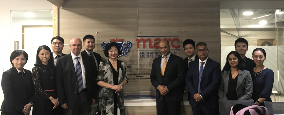 当地时间11月21日,SCIA代表团访问了毛里求斯商会(MCCI)及毛里求斯商会仲裁调解中心(MARC),并就分别立足深圳和毛里求斯开展中非仲裁合作的具体安排进行了深入探讨。郭小慧女士与MCCI主席Azim Currimjee先生分别代表SCIA与MARC签署了合作协议,并共同为该合作协议纪念牌揭幕。根据该合作协议,双方将共建中非纠纷解决合作机制,在中非商事纠纷仲裁解决推广、仲裁庭审设施设备支持、仲裁员专业培训等领域开展深度合作,以促进中非企业合作。