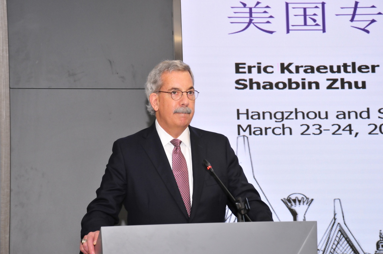 在主题分享环节,美国摩根路易斯律师事务所知识产权业务主席EricKracutler以“美国专利诉讼策略”题,从石油国家案例,TC Heartland诉讼地案,专利法101条的发展等几个方面同与会嘉宾进行了分享。
