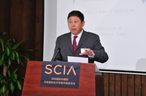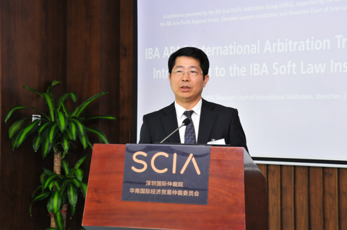 SCIA院长刘晓春博士代表SCIA致欢迎词,并重点分享了SCIA在过去三十五年中对推动国际仲裁发展所作的创新,以及SCIA在诚信合作原则、利益冲突指引及证据规则等方面对IBA经验的借鉴。刘晓春院长向与会者介绍了深圳国际仲裁院和深圳仲裁委员会的合并情况,并表示合并后的SCIA将继续秉承“独立、公正、创新”的理念,成为具有国际公信力和影响力的一流仲裁机构。
