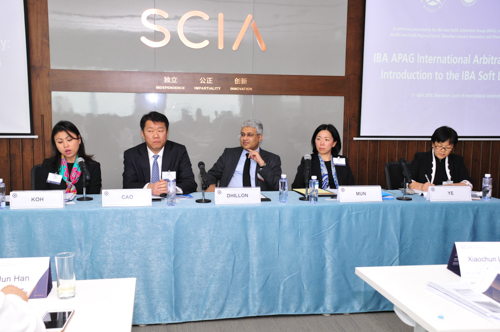 第三环节主题为如何在国际仲裁中体现专业性——《国际律师协会国际仲裁当事人代理指引》,由Koh女士主持。中伦律师事务所合伙人曹丽军先生,SCIA仲裁员、香港李伟斌律师行合伙人文理明女士,Dhillon先生和叶渌女士向与会者详细讲解了《国际律师协会国际仲裁当事人代理指引》的内容,特别讨论了当事人代理指引出台的背景和争议,介绍了国际仲裁对律师代理行为的规范要求以及实践中常见的相关问题。