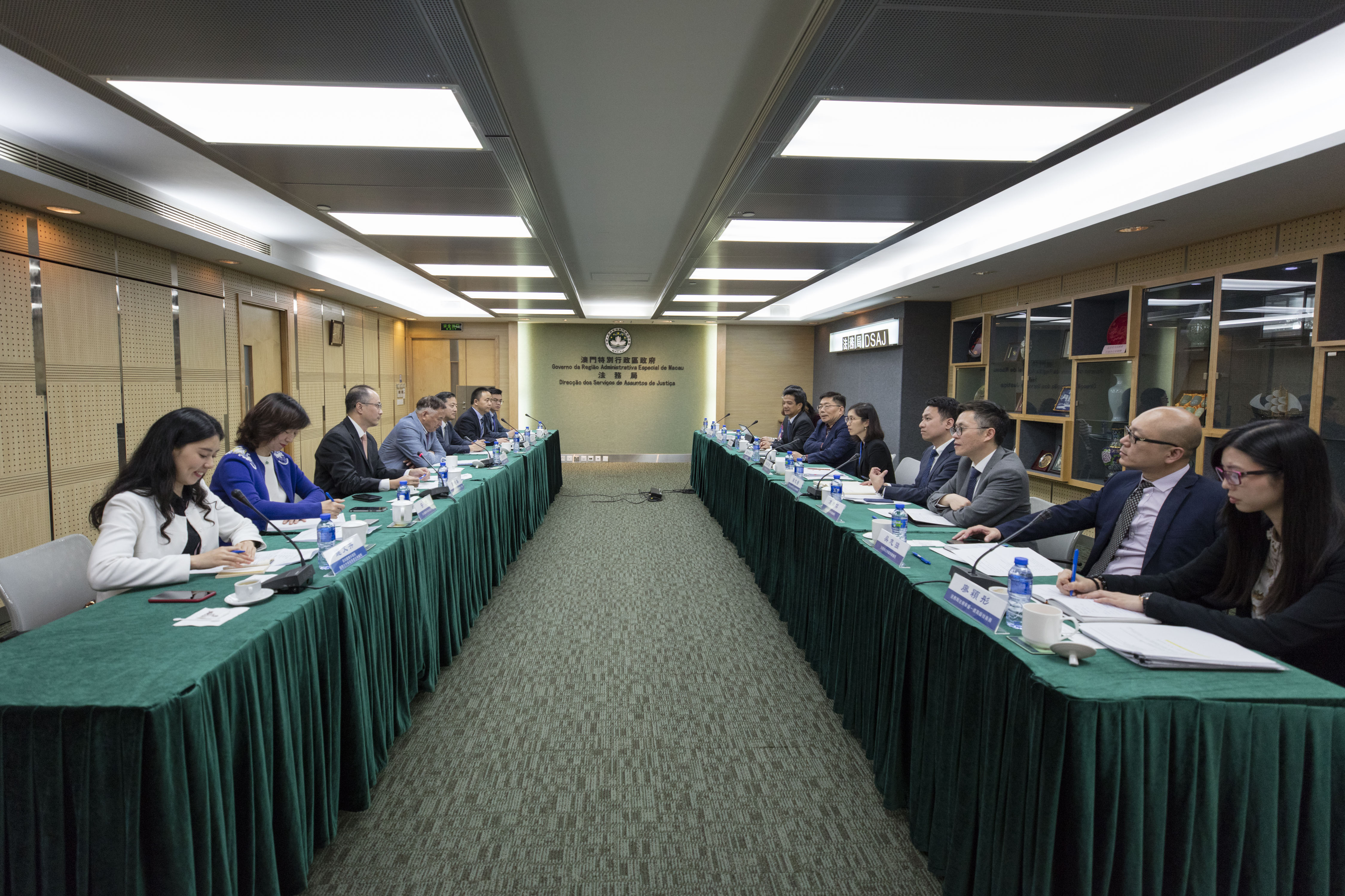 深圳国际仲裁院代表团此次访问澳门期间,还于2019年5月6日受邀拜访了澳门特别行政区政府法务局,与刘德学局长、钟颖仪副局长、法制研究及立法统筹厅陈志扬厅长、法律草拟厅冯炳杰厅长、法律翻译厅吴志强厅长及相关法律专家进行了深入交流。双方探讨了澳门本地仲裁立法的情况、仲裁发展情况,深圳国际仲裁院的创新发展及大湾区合作共建的成果,对未来如何共建大湾区仲裁合作新机制展开了讨论,并达成了进一步合作的意向和共识。