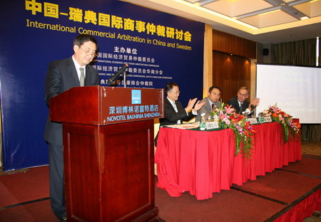 2007年11月9日,由中国国际经济贸易仲裁委员会及其华南分会和瑞典斯德哥尔摩商会仲裁院合作举办的“中国-瑞典国际商事仲裁研讨会”在深圳博林诺富特酒店举行。来自广州、香港、深圳、惠州等华南地区的仲裁员、律师以及公司法务人员共八十余人出席了此次会议。贸仲委华南分会韩健秘书长出席了会议并致欢迎辞。