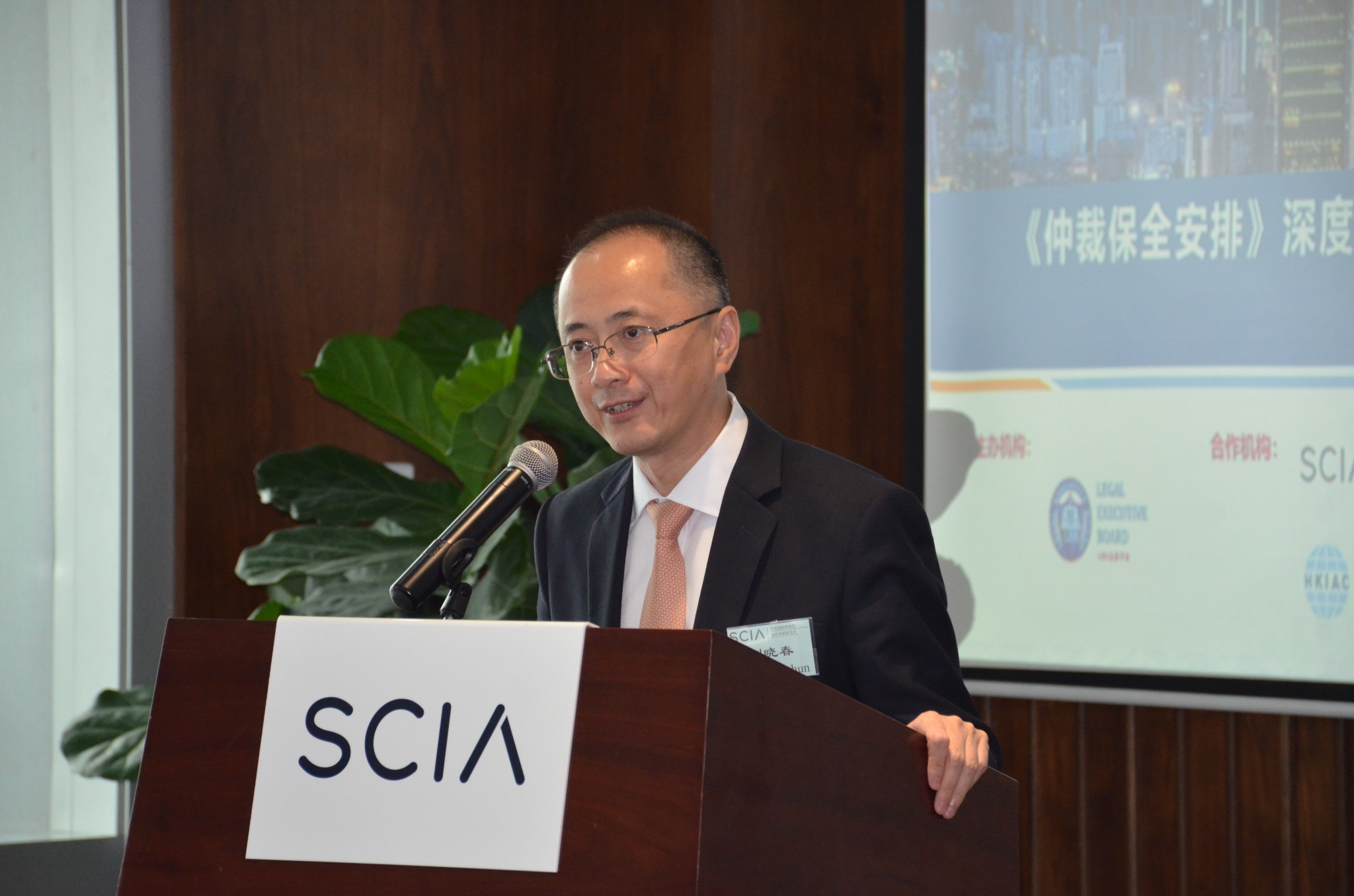 SCIA院长刘晓春博士在研讨会上致欢迎辞,他将《仲裁保全安排》与《纽约公约》《两地执行仲裁裁决安排》并称为三个里程碑式的文件,并强调《仲裁保全安排》对于粤港澳大湾区法治化营商环境建设将有重要意义。