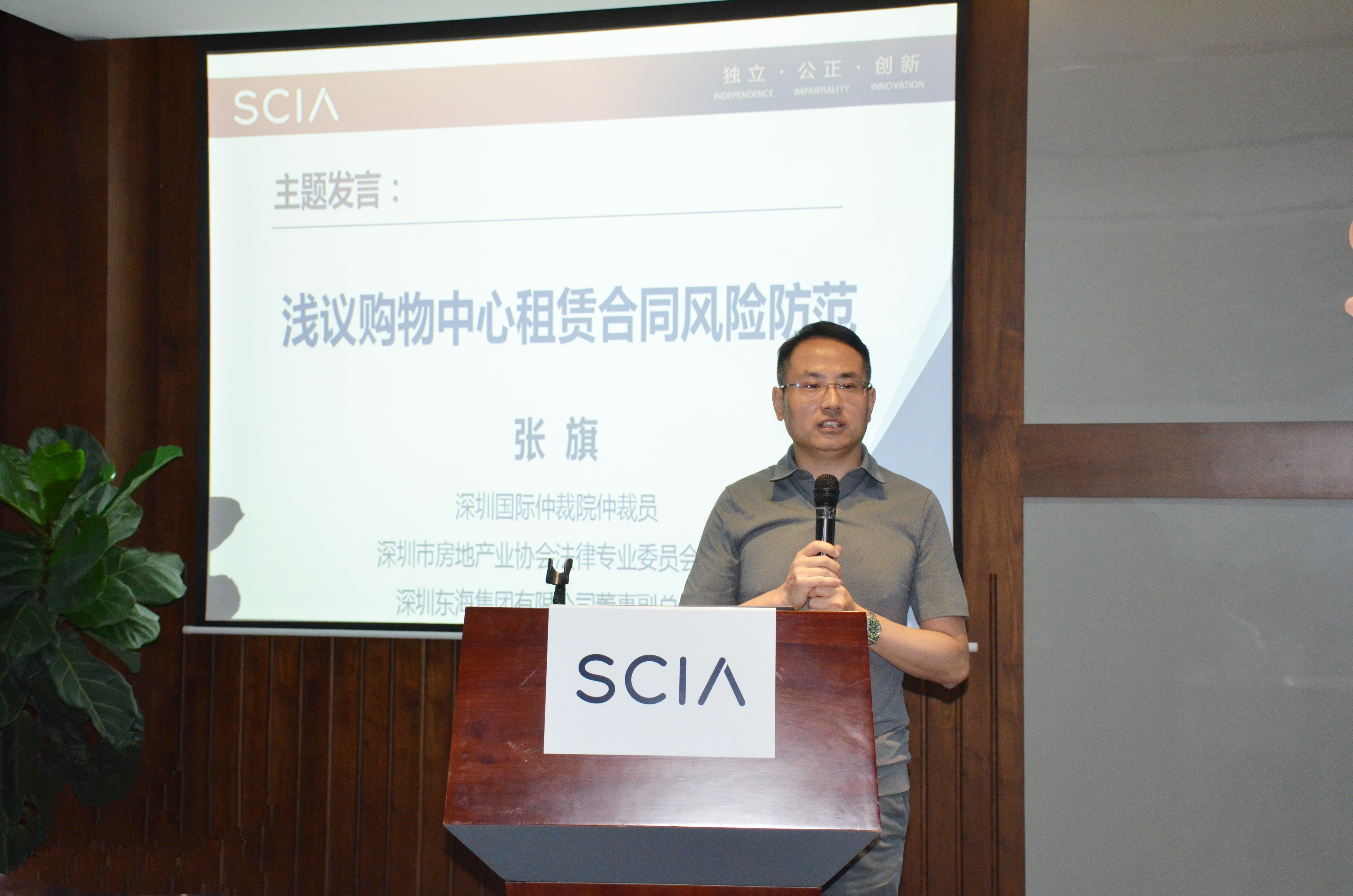 深圳国际仲裁院仲裁员、深圳东海集团有限公司董事副总经理张旗作了“浅议购物中心租赁合同风险防范”的主题发言,以购物中心为例,从招商阶段的背景调查、商标权审查、租赁合同条款设计到商业运营关系处理,系统介绍了企业在房屋租赁全过程中的风险防范,并就仲裁在解决租赁合同纠纷案件中的几点困惑同与会嘉宾作了分享和探讨。