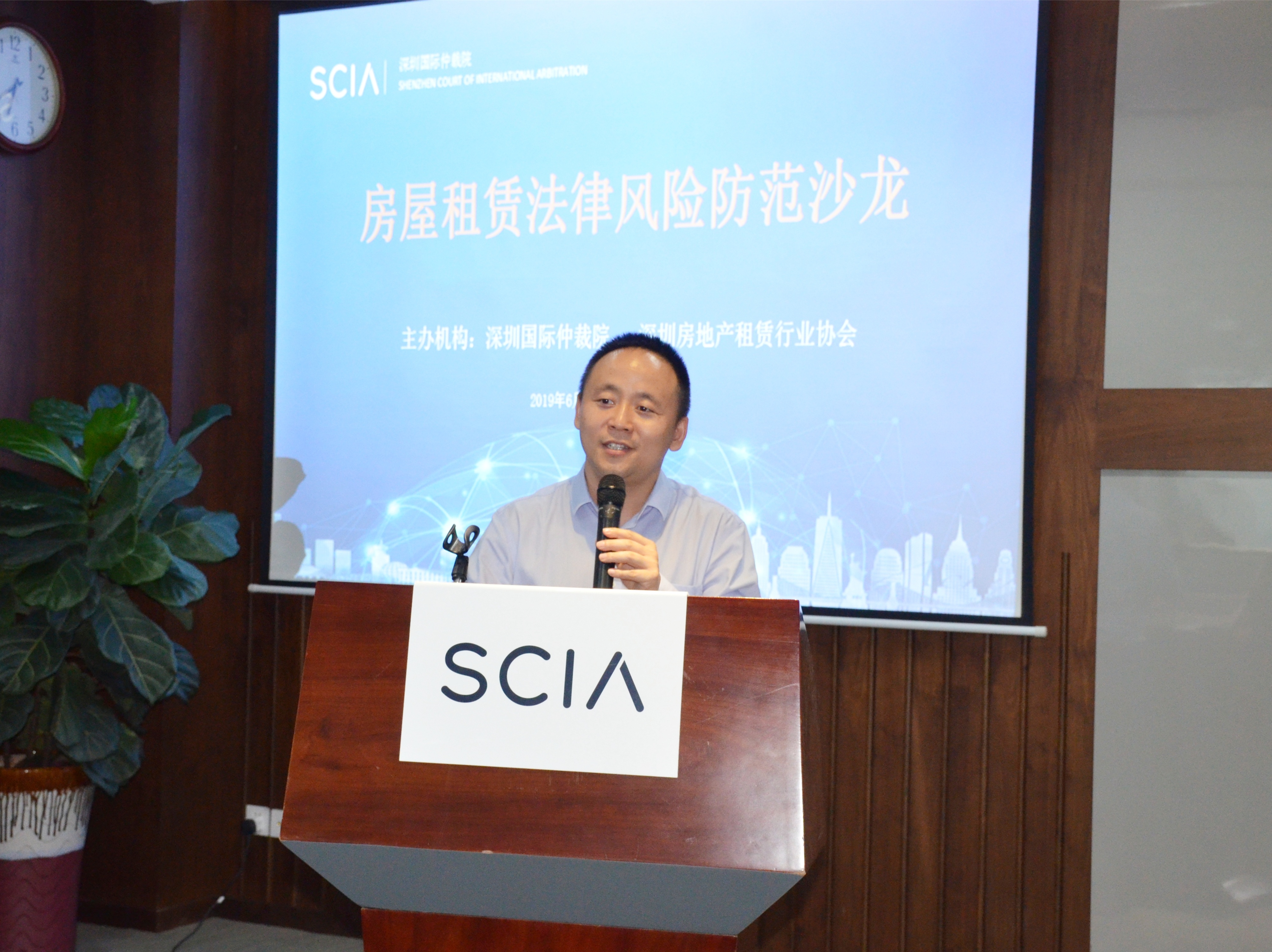 2019年6月2日,深圳国际仲裁院与深圳市房地产租赁行业协会共同举办“房屋租赁法律风险防范沙龙”,邀请深圳市房地产业协会法律专业委员会专家、深耕房地产租赁行业的资深律师和深圳国际仲裁院仲裁员就房屋租赁行业现状、法律规定、风险防范以及纠纷解决等问题进行交流。来自各房地产企业的法务、律师及仲裁员等百余人参加了本次活动,并与各位发言嘉宾就热点话题进行了热烈讨论。深圳国际仲裁院院长助理杨涛主持了本次活动。