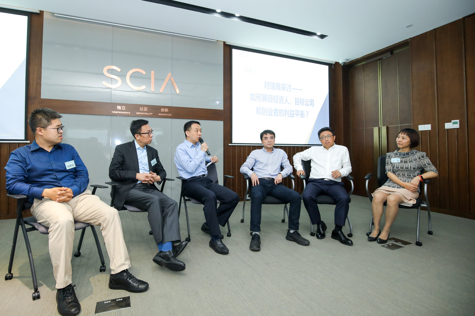 专题二结束前,主持人赵亮与主讲嘉宾谢学军、张联庆、李建辉、郭世栈和赵枫围绕“对赌再探讨——如何兼顾投资人、目标公司和创业者的利益平衡”展开讨论,并与参会嘉宾进行热烈互动交流。