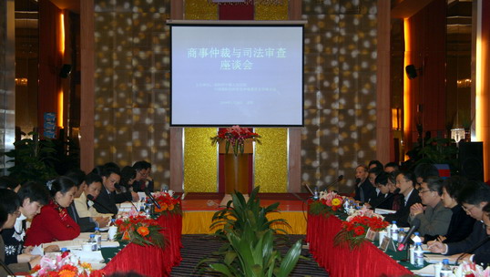 2008年1月28日,中国国际经济贸易仲裁委员会华南分会(下称“我会”)和深圳市中级人民法院(下称“深圳中院”)联合举办的“商事仲裁与司法审查座谈会”在深圳金中环酒店举行。深圳中院郭毅敏副院长、黄宇副庭长及深圳中院立案庭、执行局、民二庭、民四庭和民五庭的审判员等一行19人,中国国际经济贸易仲裁委员会郭晓文副主任、我会韩健秘书长、刘晓春副秘书长、黎晓光副秘书长及我会秘书处、咨询发展处、行政处等有关工作人员,以及部分我会仲裁员出席了此次会议。