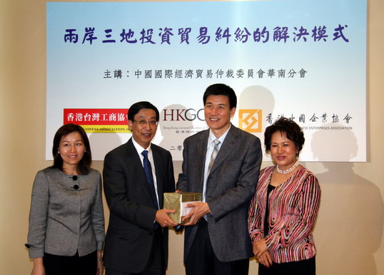 2008年7月17日,我会郭晓文主任、刘晓春副秘书长一行应邀参加由香港台湾工商协会、香港总商会、香港中国企业协会在香港联合举办的“海峡两岸投资贸易纠纷的解决模式”联合午餐会,台湾工商协会江素惠会长,香港中国企业协会会董、法律专业委员会王立宪主任委员,香港中国企业协会朱莉副总裁等出席了讲座。