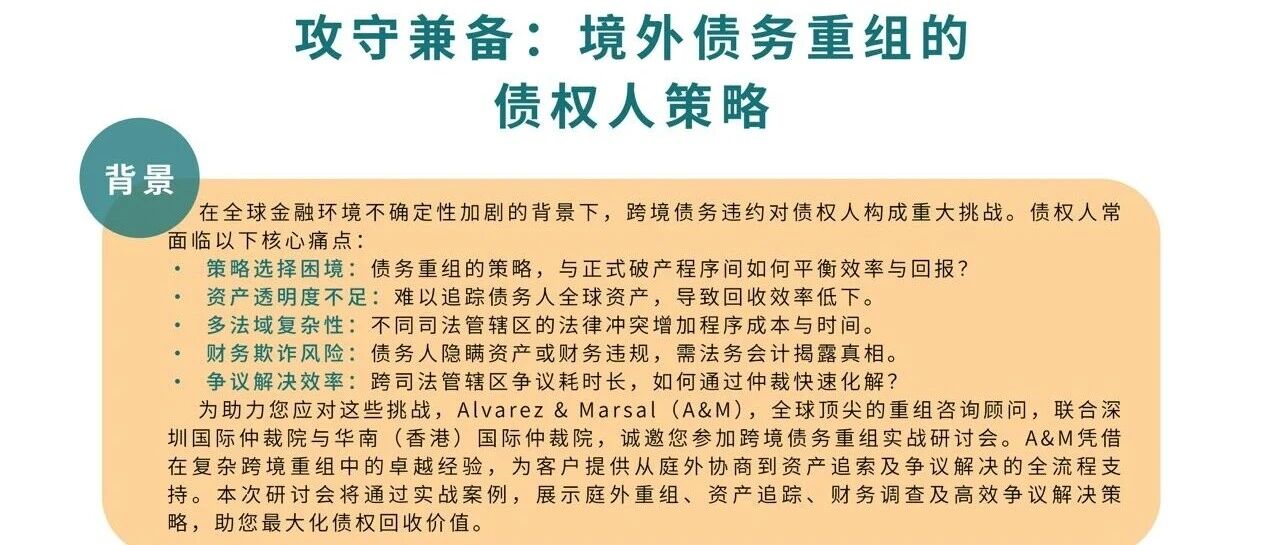 活动报名|攻守兼备:境外债务重组的债权人策略