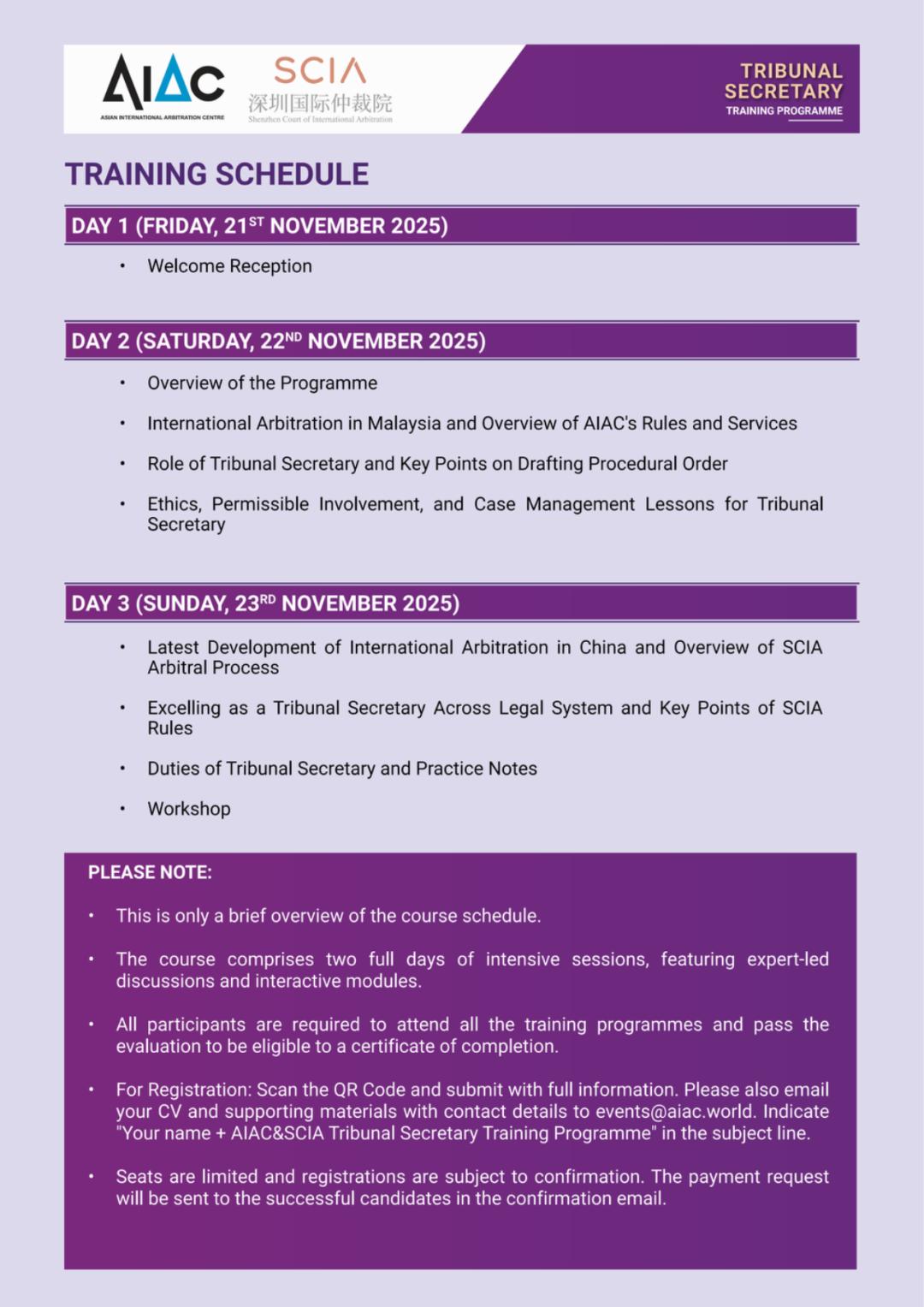 SCIA & AIAC | 中马联合仲裁庭秘书培训开放报名