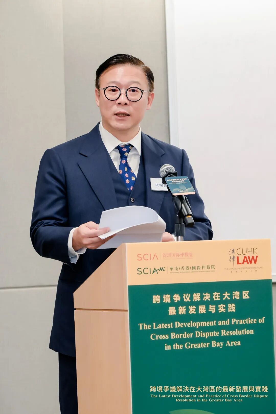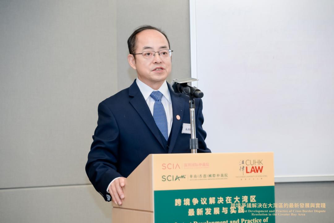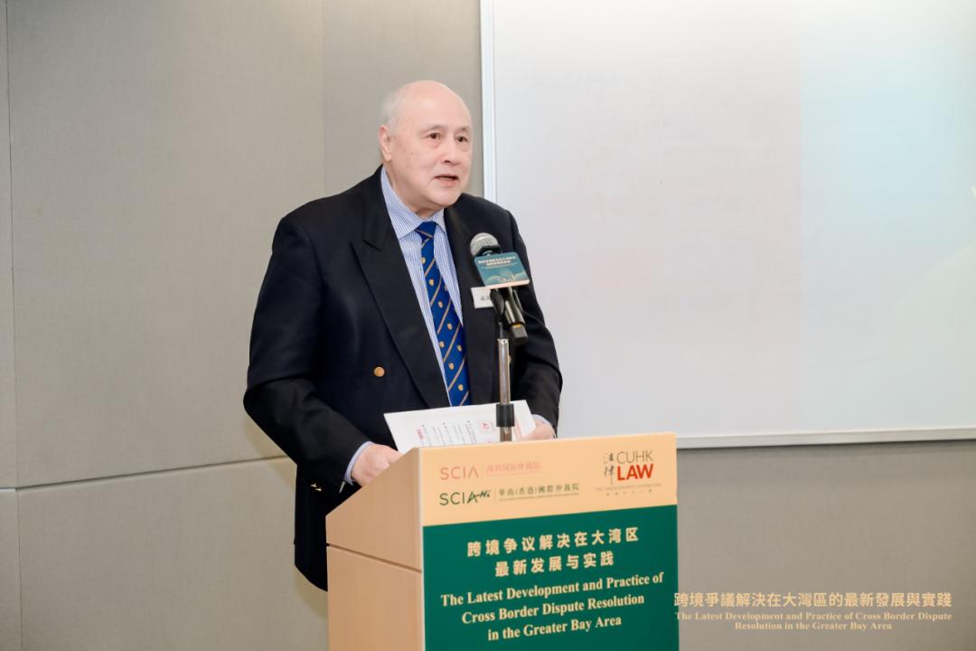 SCIA理事会副理事长、SCIAHK董事局主席梁定邦围绕“为什么选择在大湾区解决跨境争议?”作主旨发言