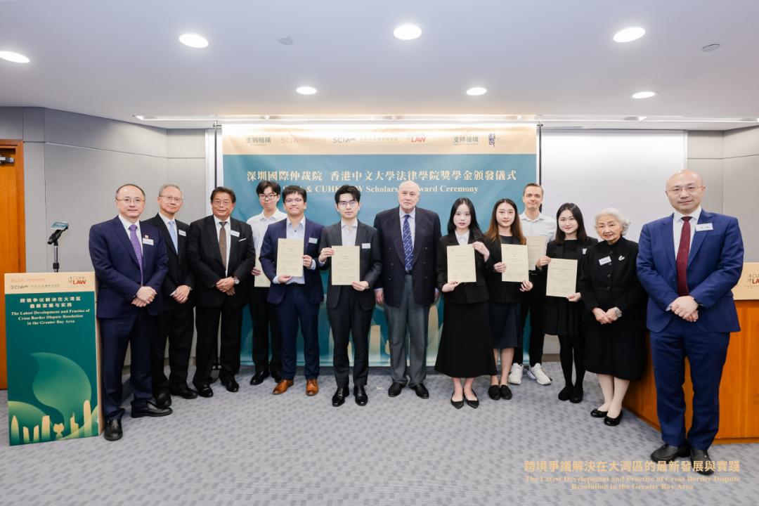 SCIA理事会理事代表、SCIAHK董事局董事代表为获得“深国仲奖学金”的CUHK LAW学生颁发了奖学金证书