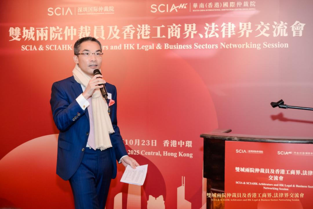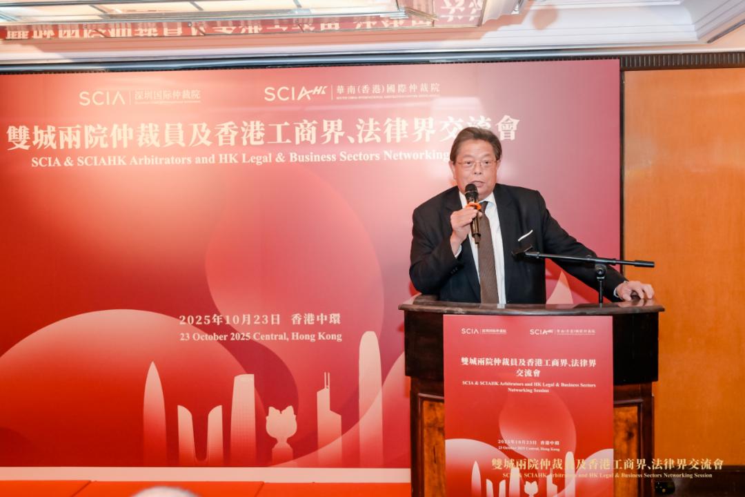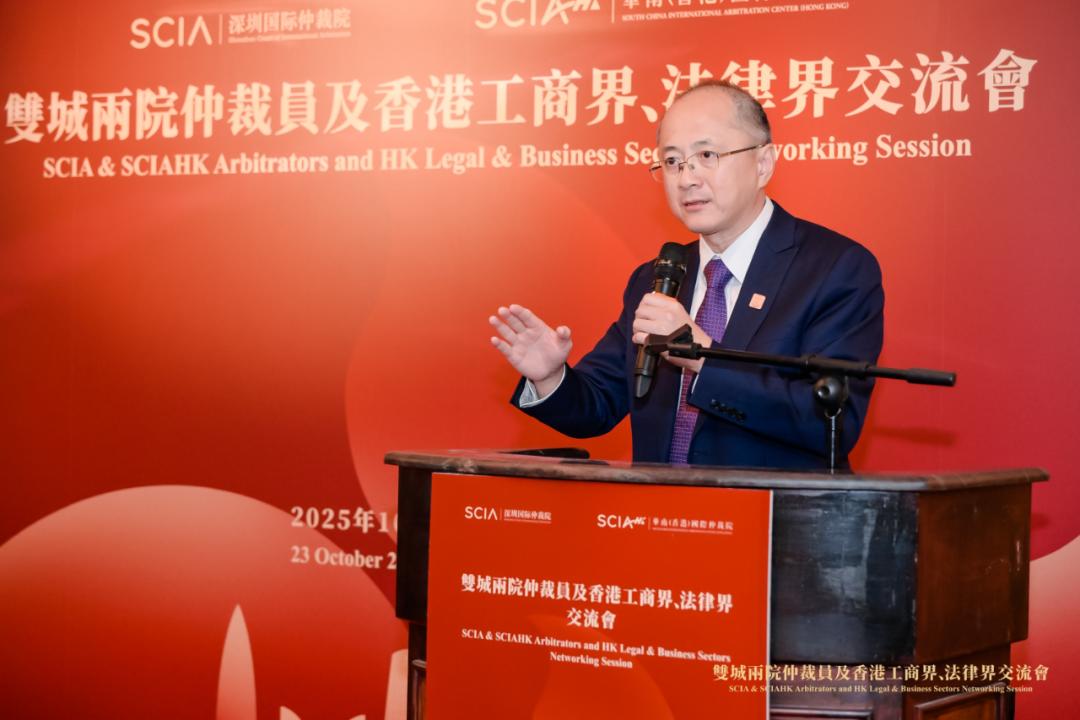 2025年10月23日,在香港仲裁周期间,“跨境争议解决在大湾区的最新发展与实践”研讨活动及“双城两院”仲裁员及香港工商界、法律界代表交流会在香港举行。两场活动均由深圳国际仲裁院(又名华南国际经济贸易仲裁委员会、粤港澳大湾区国际仲裁中心,简称SCIA)、华南(香港)国际仲裁院(SCIAHK)主办,研讨活动还与香港中文大学法律学院(CUHK LAW)共同举办,并获得了香港特别行政区政府律政司(以下简称“香港律政司”)的特别支持。