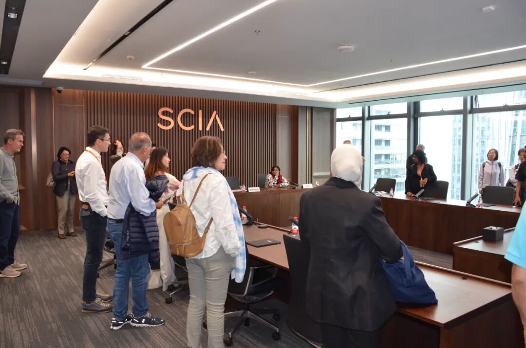 2025年10月21日,来自20个国家和地区的70余名联合国官员、国际法教授、国际律师等国际法专家到访深圳国际仲裁院(粤港澳大湾区国际仲裁中心,英文简称SCIA),走进SCIA位于前海的国际总部——国际仲裁大厦(SCIA Tower),详细了解中国改革开放四十多年来国际仲裁在深圳经济特区的创新发展、SCIA国际化的治理机制和仲裁员结构、“双城两院”规则和机制创新等,并参观庭审设施,对中国国际仲裁在服务全球经贸往来中的重要作用进行现场调研和交流。