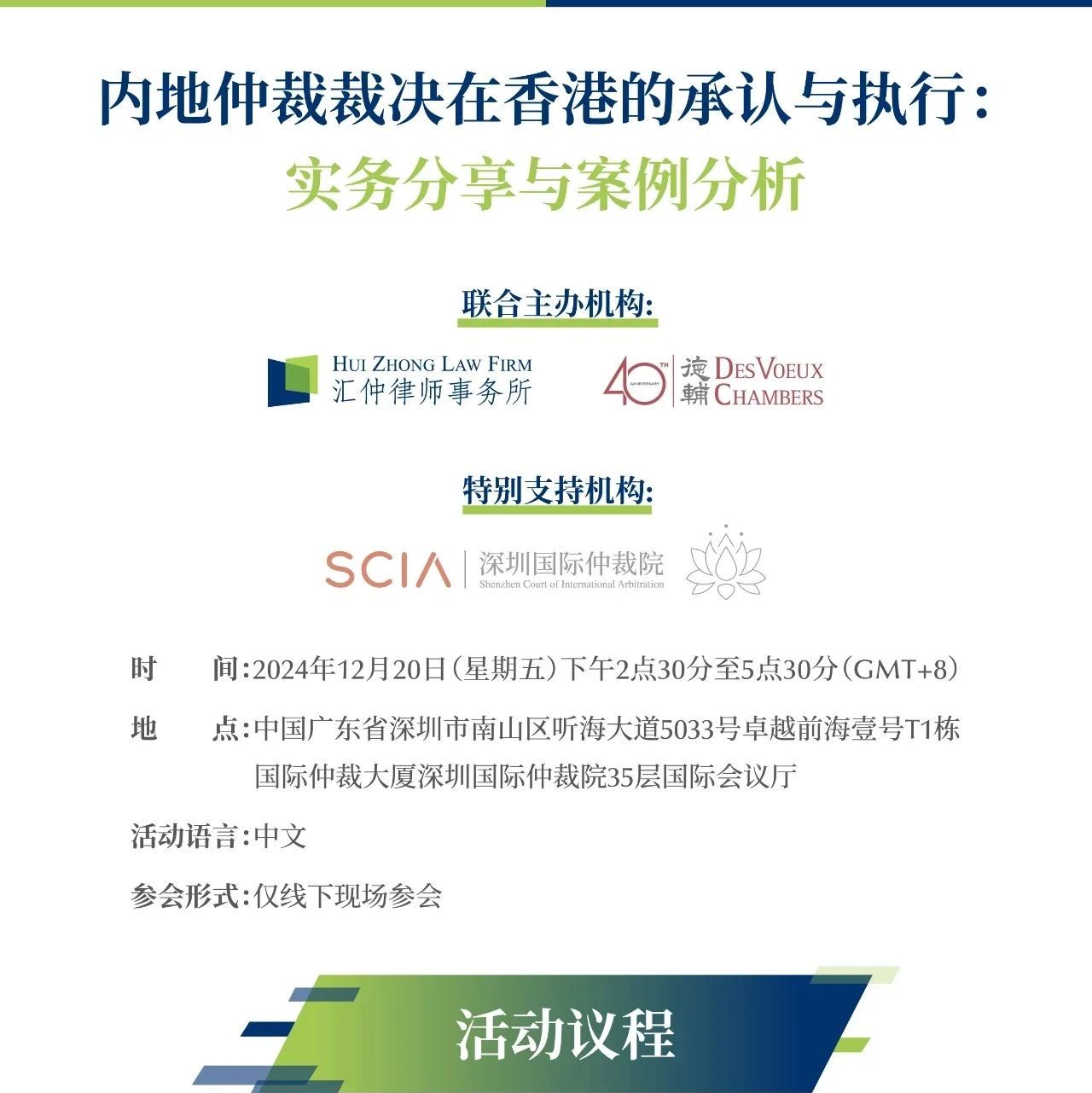 活动预告 | 内地仲裁裁决在香港的承认与执行:实务分享与案例分析
