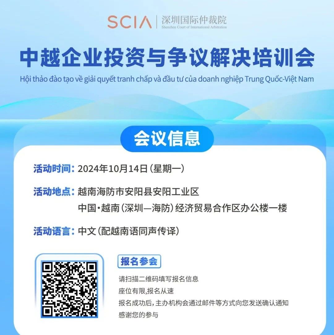 活动报名:中越企业投资与争议解决培训会(越南海防市)