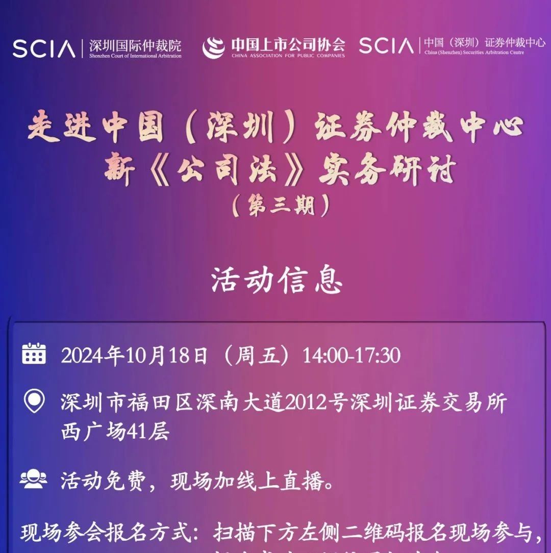 活动报名|“走进中国(深圳)证券仲裁中心”系列活动:新《公司法》实务研讨(第三期)
