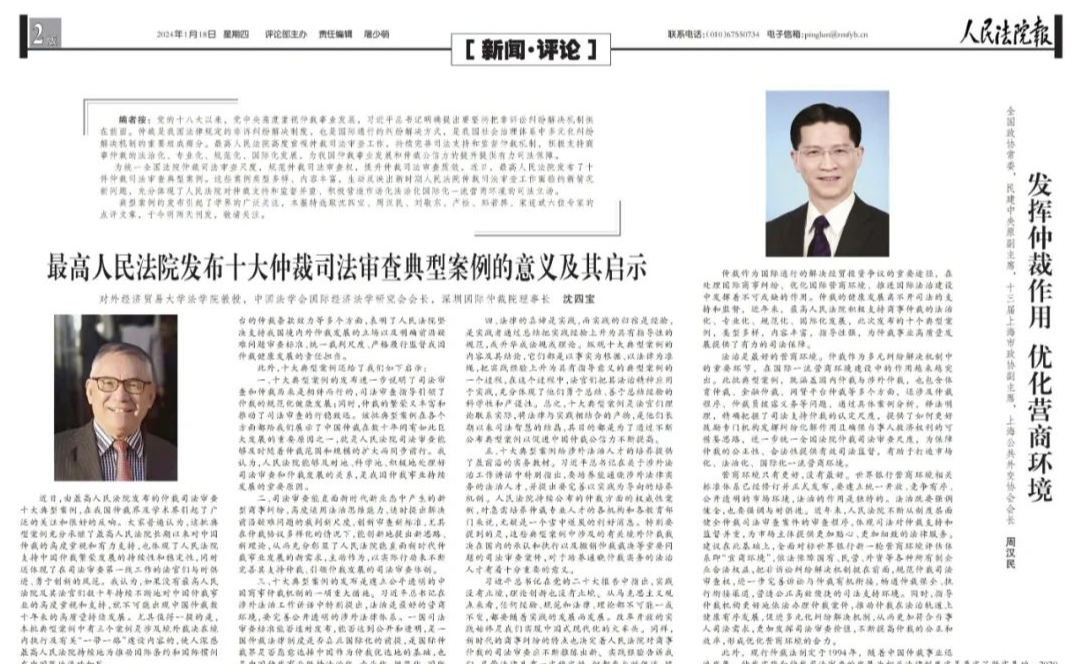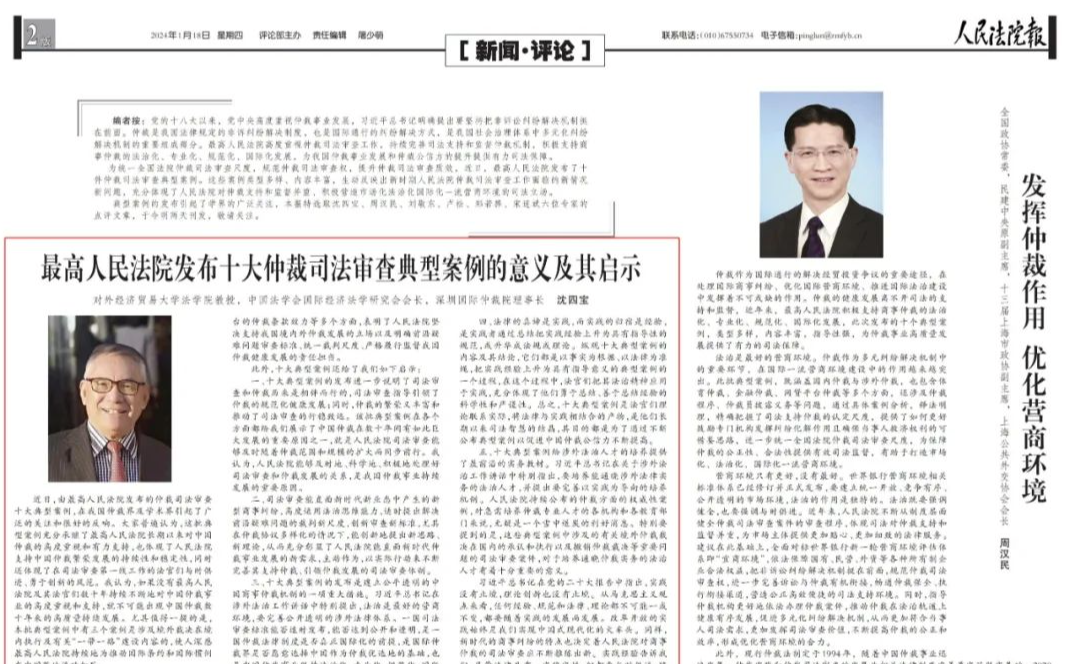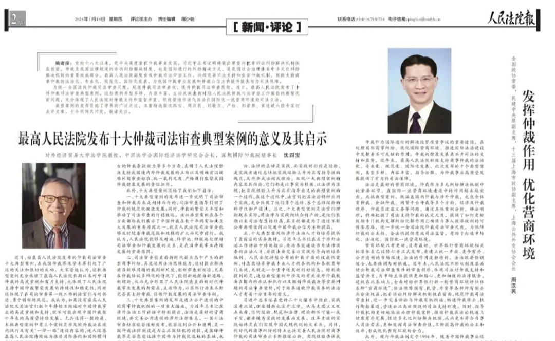 人民法院报专家文章 | 沈四宝:最高人民法院发布十大仲裁司法审查典型案例的意义及其启示