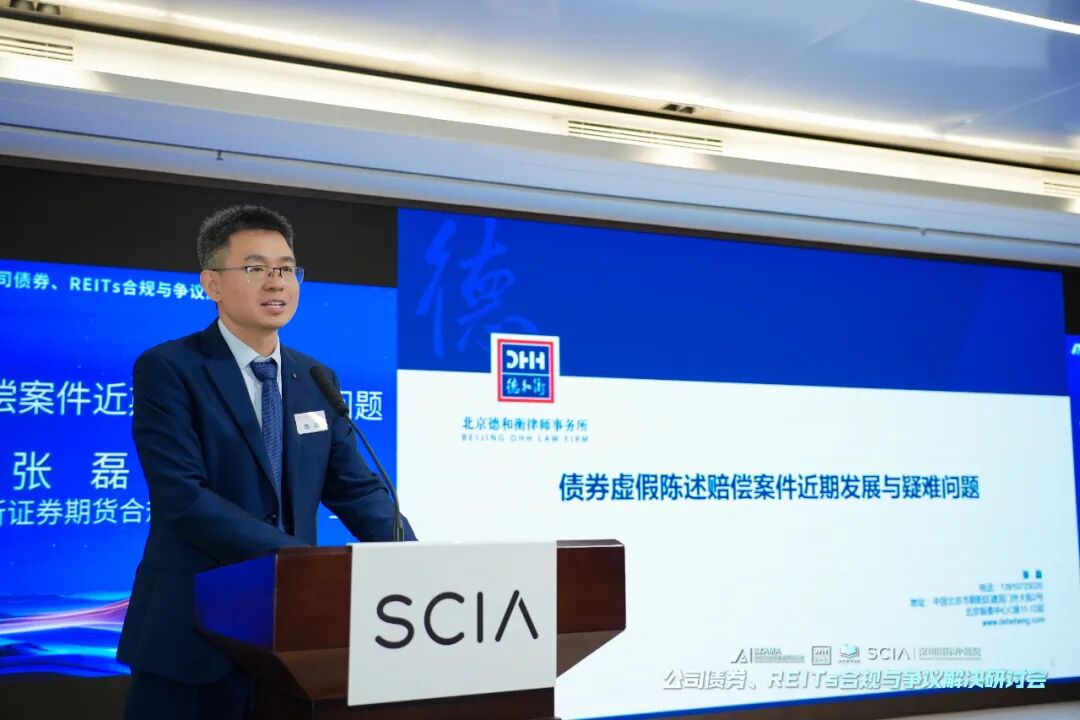 北京德和衡律师事务所证券期货合规与争议解决部主任张磊以“债券虚假陈述赔偿案件近期发展与疑难问题”为题作主题发言