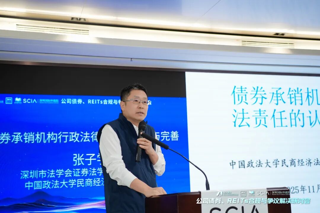2025年11月21日下午,由深圳国际仲裁院(SCIA)支持,深圳市投资基金同业公会、北京德和衡律师事务所共同主办的“公司债券REITs合规与争议解决研讨会”在前海国际仲裁大厦举办。本次研讨会邀请来自高校、行业协会、投资银行、券商资管公司、基金公司、律师事务所的专业人士围绕债券承销机构行政法律责任、债券虚假陈述赔偿案件、公募REITs及不动产证券化以及争议解决等热点话题展开研讨,吸引来自房地产、交通运输、电子信息、通讯科技、股权投资、证券、基金、资管、会计服务及法律服务等领域的专业人士通过现场和线上的方式共同参与。